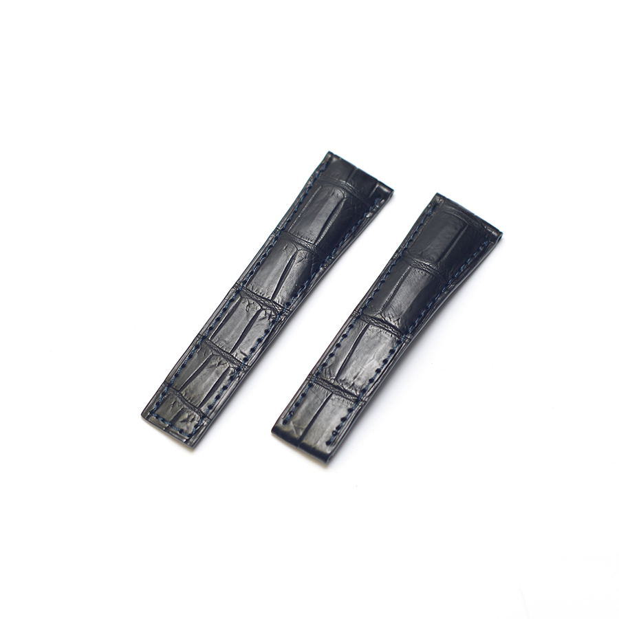 タグホイヤー モナコ マックイーン復刻モデル 時計ベルトオーダー|クロコダイル × マットブラック × ネイビーステッチ
